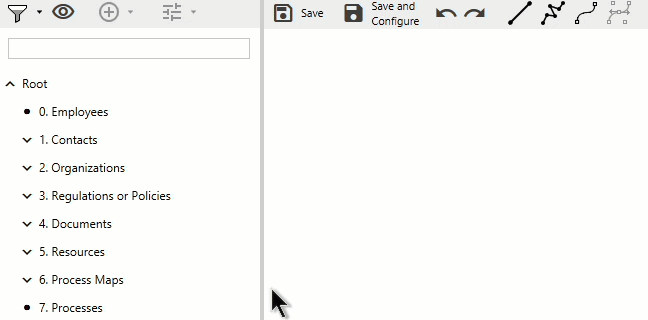 On the left side of the Process Maps Designer is a menu that allows M-Files content to be added to the maps:
