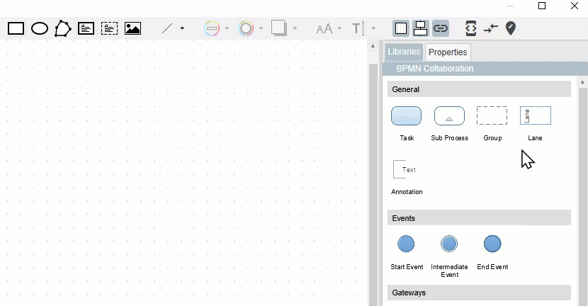 Pools and swimlanes are elements of symbol notations that can be used via the symbol library (FLOW, BPMN).