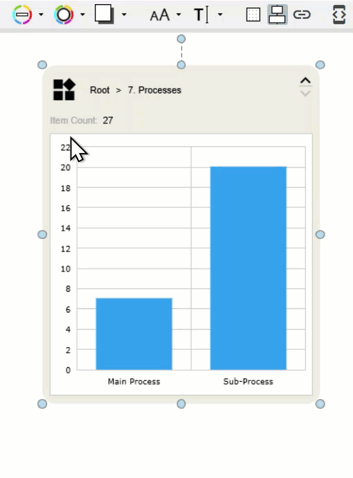 If an M-Files object or view is brought from the left-hand pane onto the canvas, the depiction is automatically determined by the previously selected map type. But this is not the only potential representation.