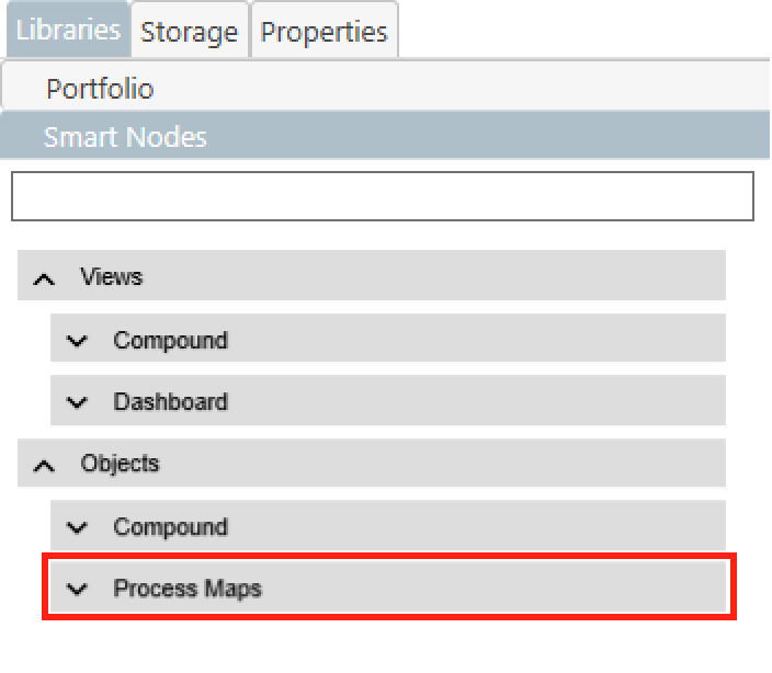 Process Mapstab of theObjectscategory. - When the tab is opened, you will find two types of Map by Reference Smart Nodes.