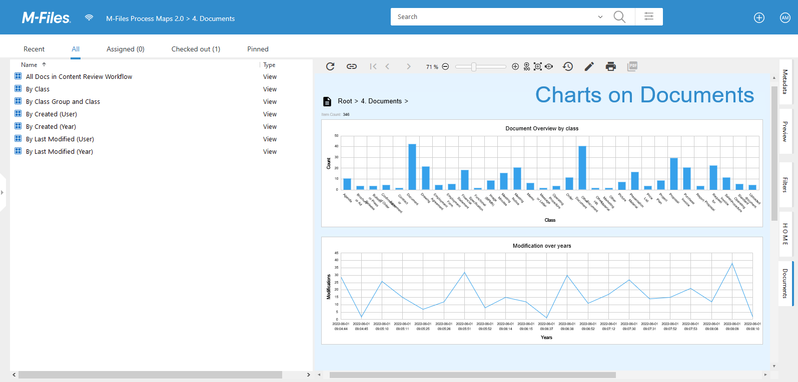 - View Selection -Here you will find an expandable tree structure of all views that are contained by your M-Files Vault. Even though you could define multiple tabs for one view (showing up under