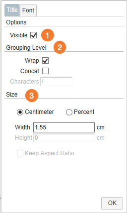 3. Size - Define the size of the title. Here you have the choice between changes in centimeters or percentages.