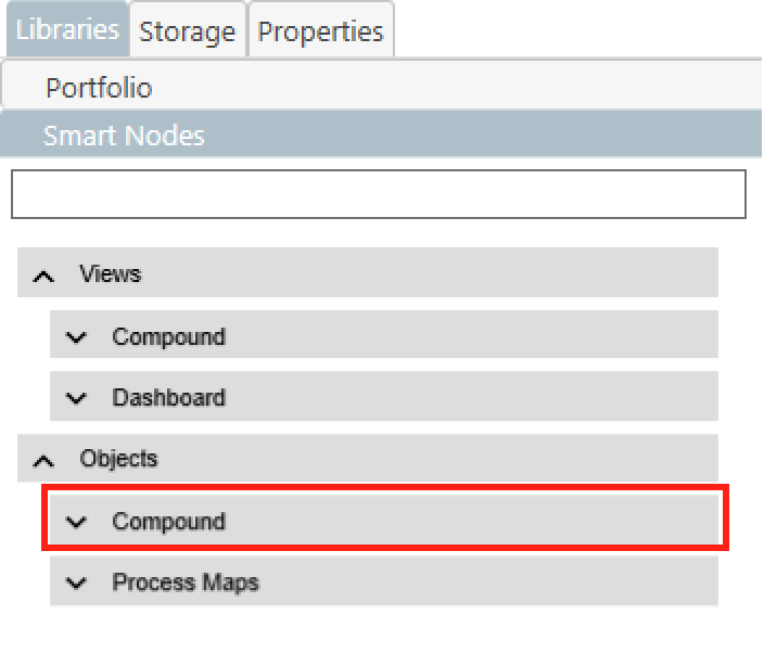 Compoundtab of theObjectscategory. - Three different Smart Node types can be found in the opened Compound Tab.