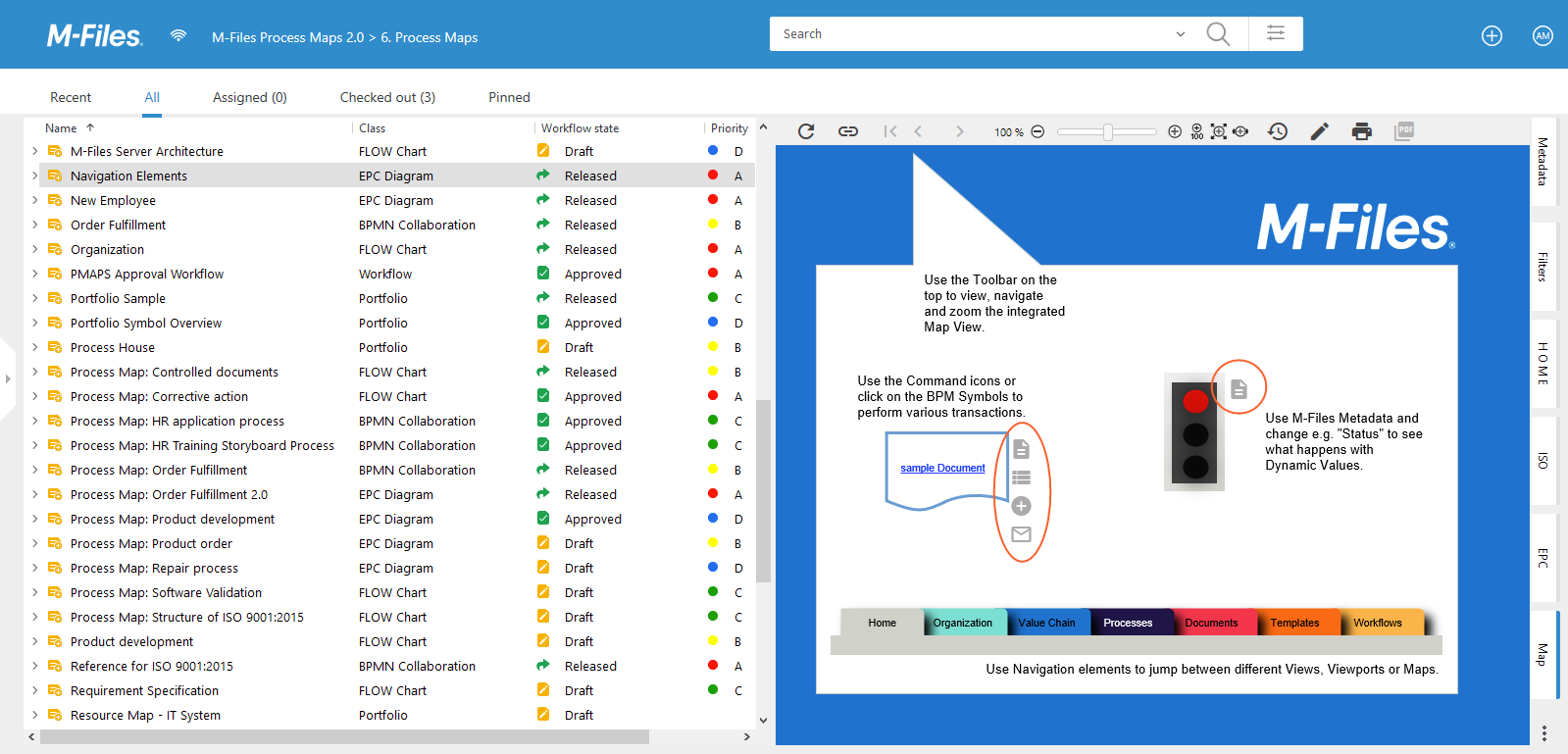 M-Files Process Maps allows you to customize your Home tabs at different levels and thus guide users to relevant content.