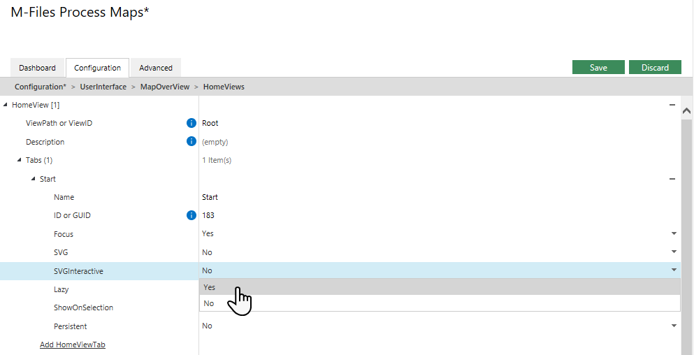 - The viewer that is used: M-Files Process Maps offers an alternative static SVG graphical preview without additional interaction to the server. This speeds up loading dramatically, but limits the functionality to just show a 100% zoomed static map at first.