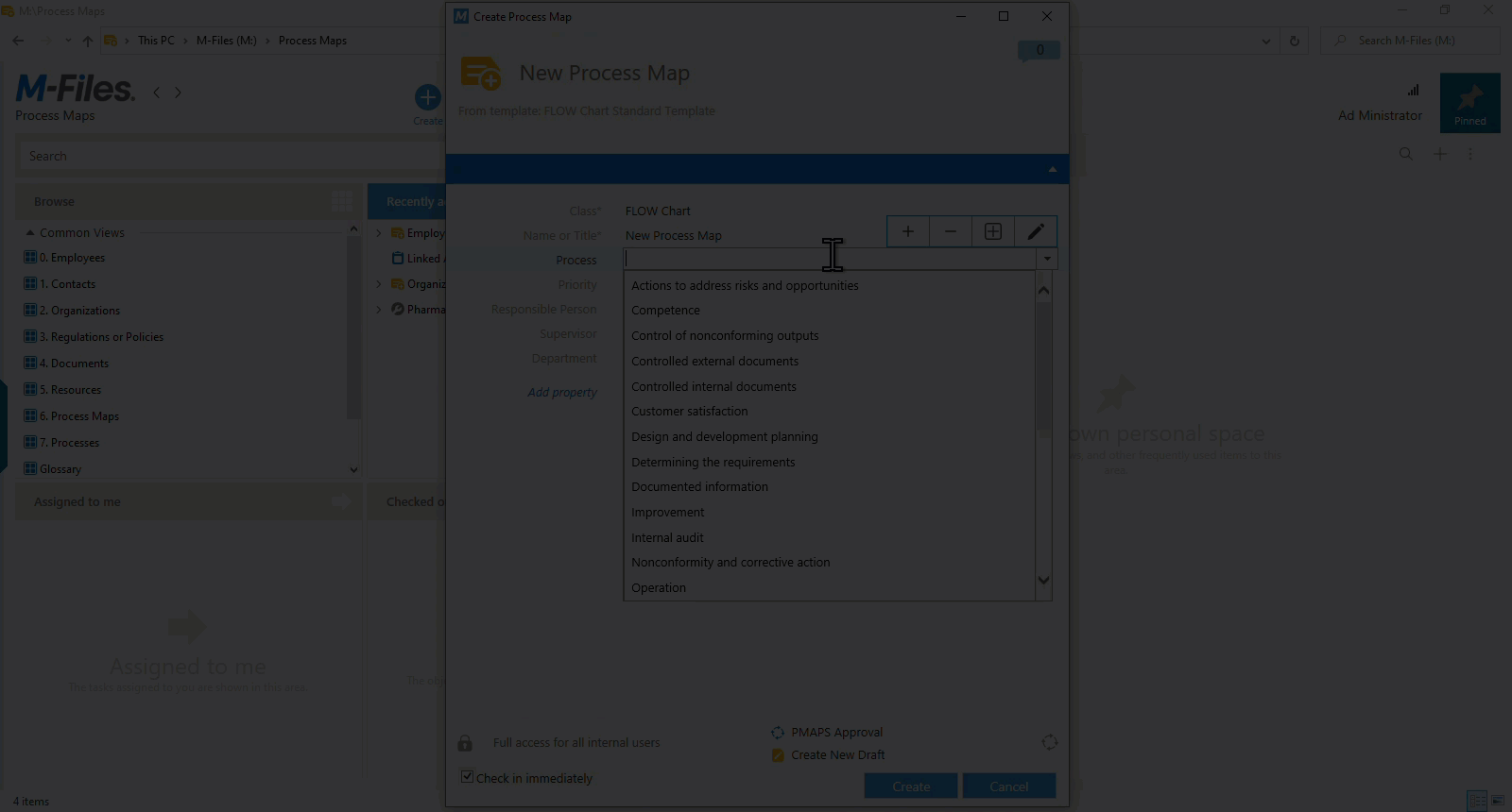 Complete the following steps to successfully create a process map in M-Files: