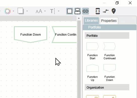 When moving shapes with the left mouse button pressed, snap lines appear to help you align the shape. You can also activate a grid in the top bar to get a standard alignment grid. If you want to move more finely, for example with free form representations, disable both options in the top toolbar.