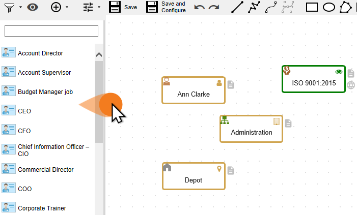 For example, if you have units, departments, sites, etc. in your vault, you can connect them directly to the corresponding symbols of the notation by configuring M-Files Process Maps.