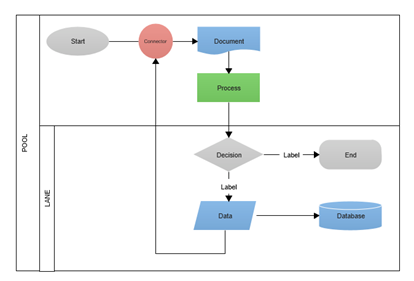 Pools and swimlanes are elements of symbol notations that can be used via the symbol library (FLOW, BPMN).