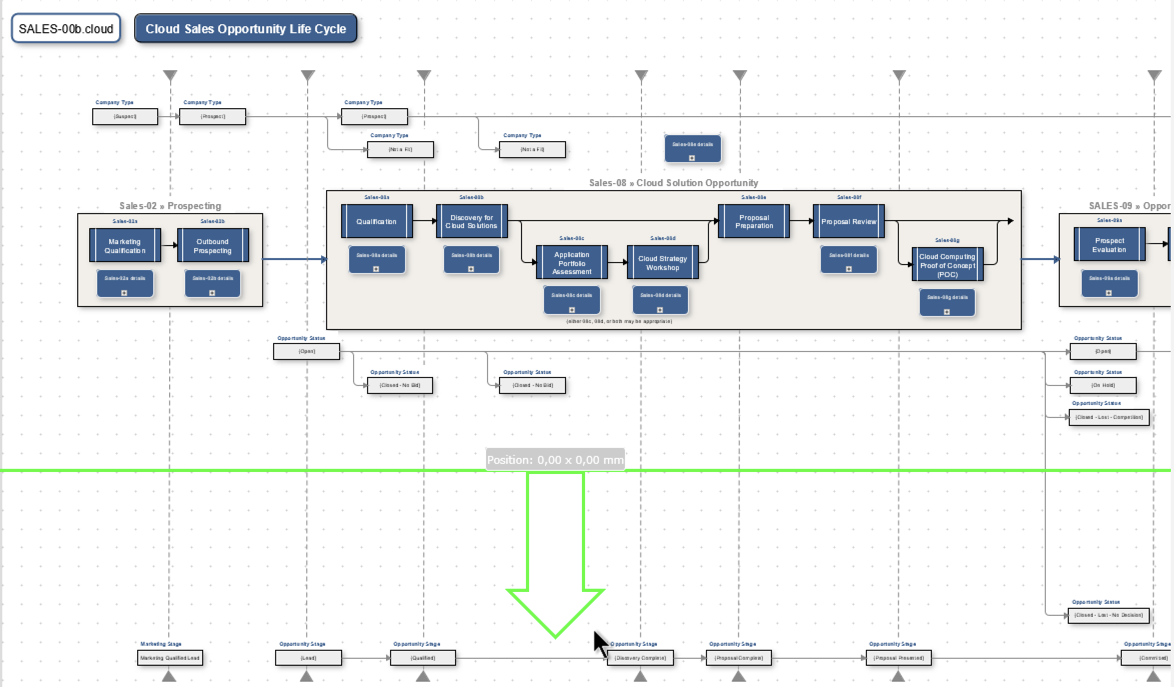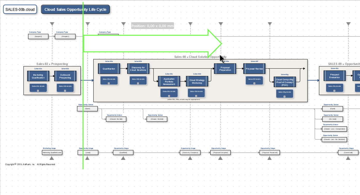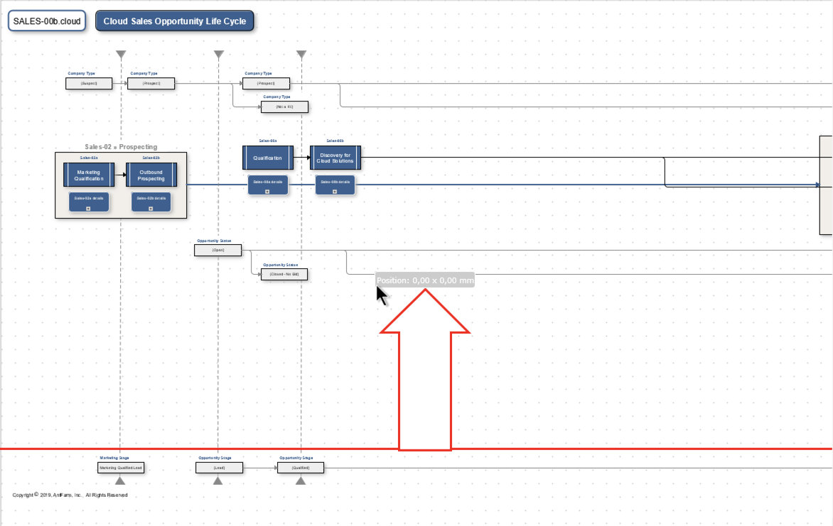 Large and complex process definitions can make it challenging to move objects out of the way. In order to make space for additional elements, you typically select objects and move them. To really grab all objects, the selection becomes difficult on large maps.