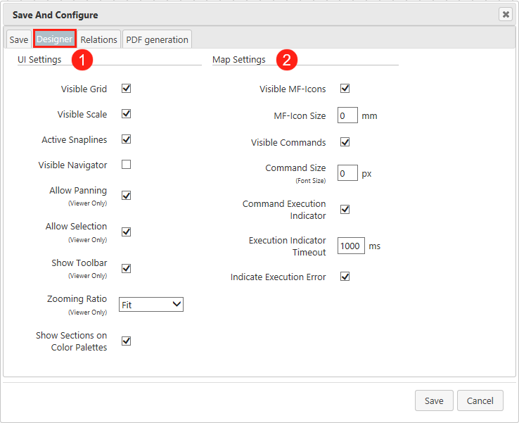 - If you change these settings the map will in future be opened directly in the desired UI configuration within the designer.