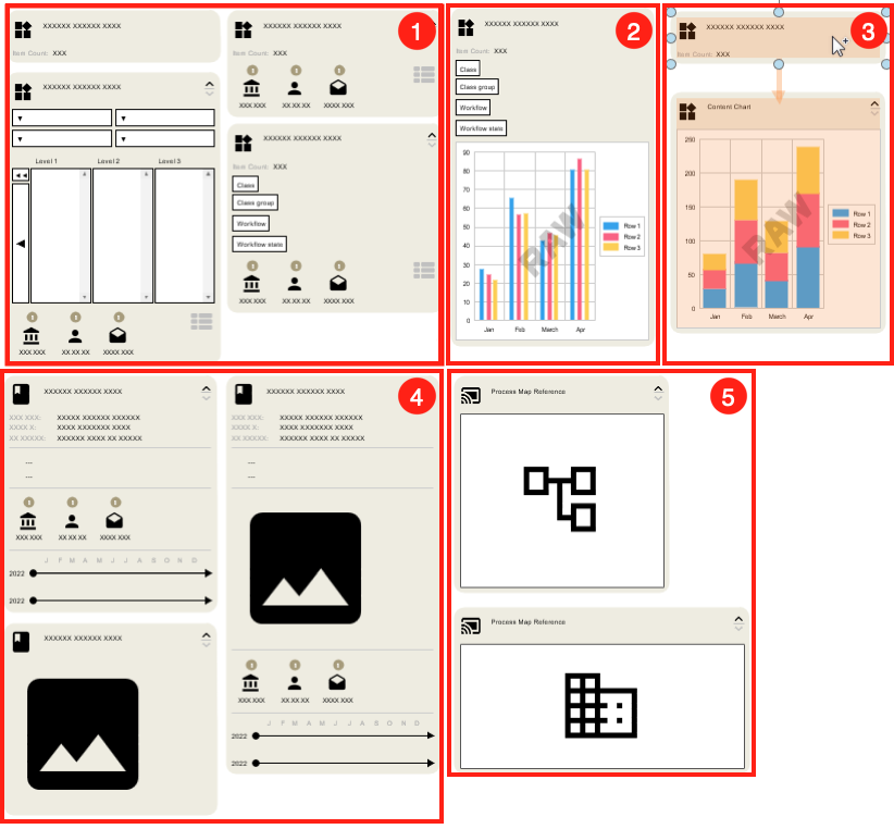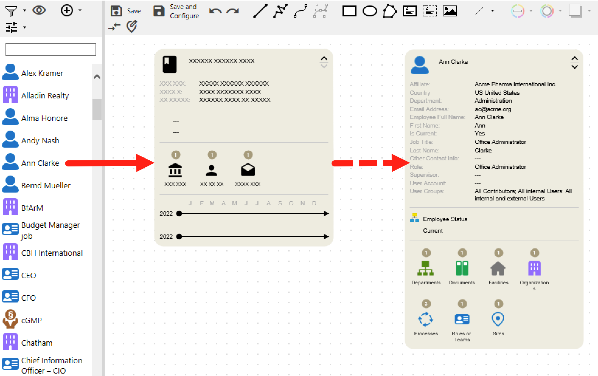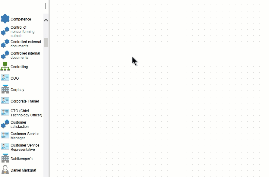 If an M-Files object or view is brought from the left-hand pane onto the canvas, the depiction is automatically determined by the previously selected map type. But this is not the only potential representation.
