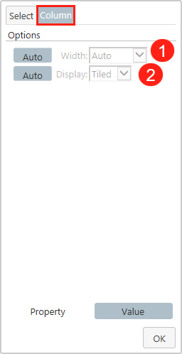- Display Options - Specify the display format of the property column. To be able to edit this entry, you must first deselect
