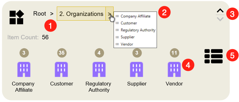 - Levels Above - Set whether and how many previous levels of the selected view should be shown.