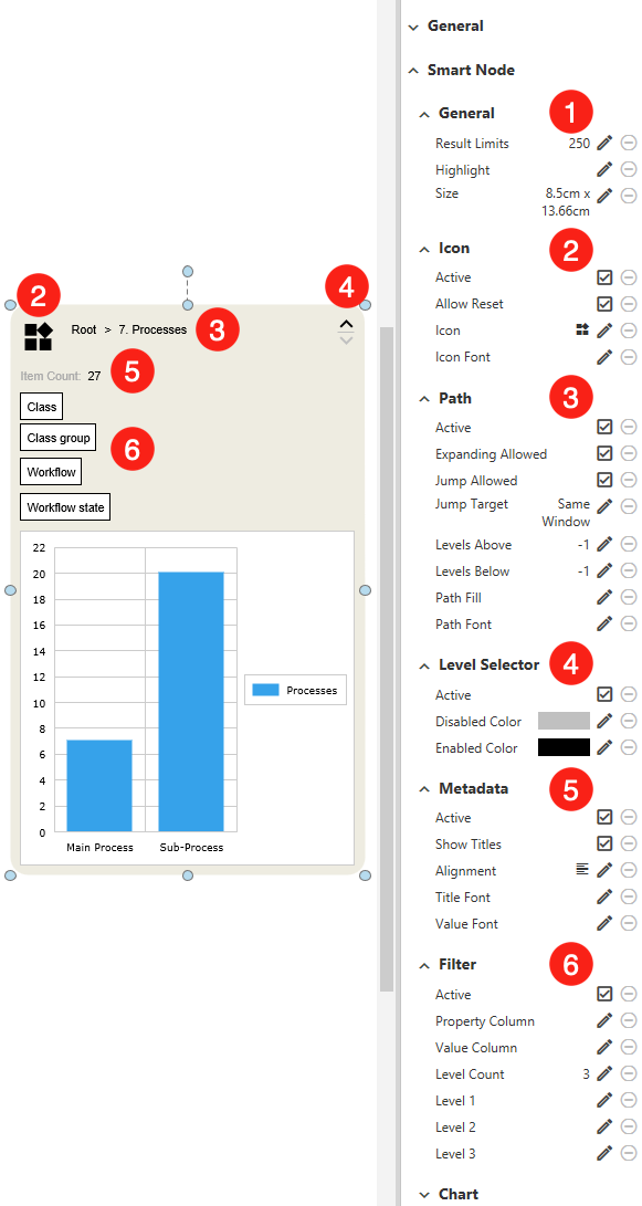 - Icon - Besides the aesthetic added value, the icon also brings an important function. By default, the Smart Node can be reset to its original state with a click on it. This is especially useful if you are using a highly subdivided view that you want your users to browse.