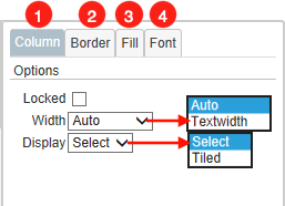 - Width - Defines how the property columns should behave if the property title is longer than the width of the field. Auto: Titles that are too long will get a line break. Textwidth: The width of the field adapts dynamically to the length of the title.