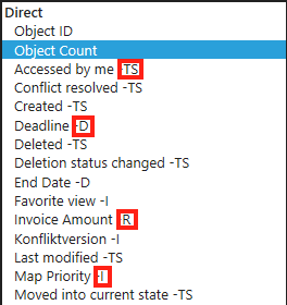 - TS = Timestamp - These properties are assigned by the system itself and refer to an exact point in time. This includes, for example, the creation time of an object, or when it was last edited.