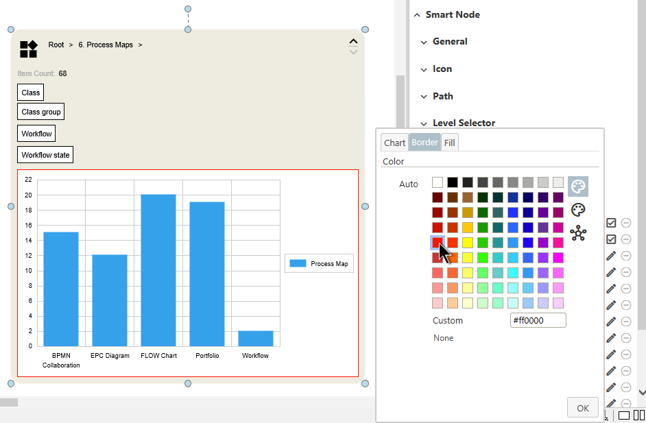Noneis selected. To make more colorings selectable, this field must be clicked first. - Path Font - As with any other label, it is also possible to customize the way the Smart Node label is displayed. If you need more information on how to customize the font of texts, you can find more information here.