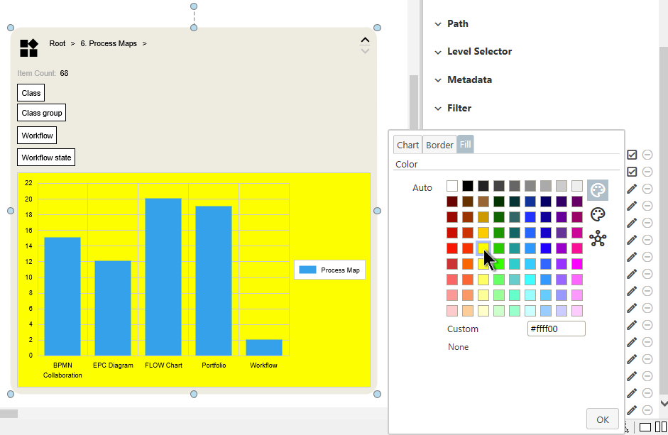 - Always show Data - Normally, only the elements that are directly in the selected view are being processed into a chart. If there are sub-views in it, elements lying in them are not considered. If this menu item is activated, all elements of the underlying views will be displayed.