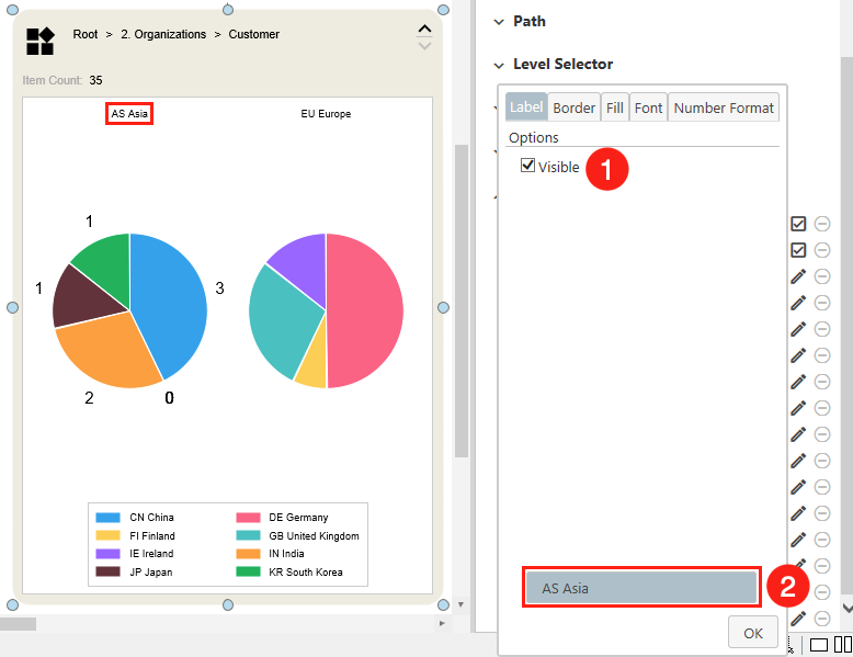 4. Level - If the property you have selected consists of a value list (MS or SL), the Level tab is activated. In this tab, you can reduce the considered M-Files objects to certain aspects of the value list and change the order of the groupings.