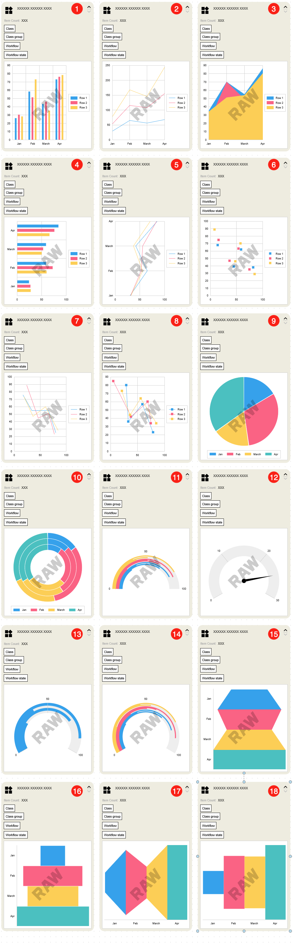 Note that if brought onto the canvas, a Smart Node for Charting will be equipped with a so-called RAW data set. This is sample data that is randomly calculated when it is being dropped. This way, before the Smart Node is linked to a view, the chart type is visible right away.