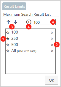 - Value Container - This container holds the values that are currently available for the user to choose from. If a value is clicked, it will be set as default. This is indicated by the filled star