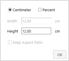 Sizemenu item. You can either specify the desired size in centimeters or make a change in percentages.