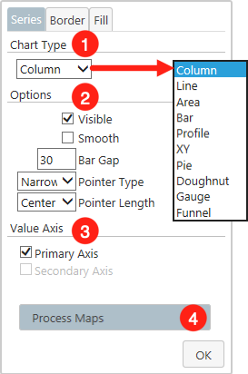 3. Value Axis - If you have created a secondary Value Axis (see the Data Series section at the end of this article to learn how this works), you can specify here whether the changes should be oriented towards the primary or secondary axis.