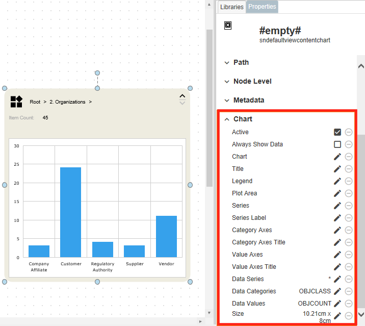 - Chart Type - Although you can select a suitable chart type in the library, you can also change it afterwards in the properties. You have the possibility to choose from 18 different chart types. Among so many, there will be one that exactly fits your field of application.