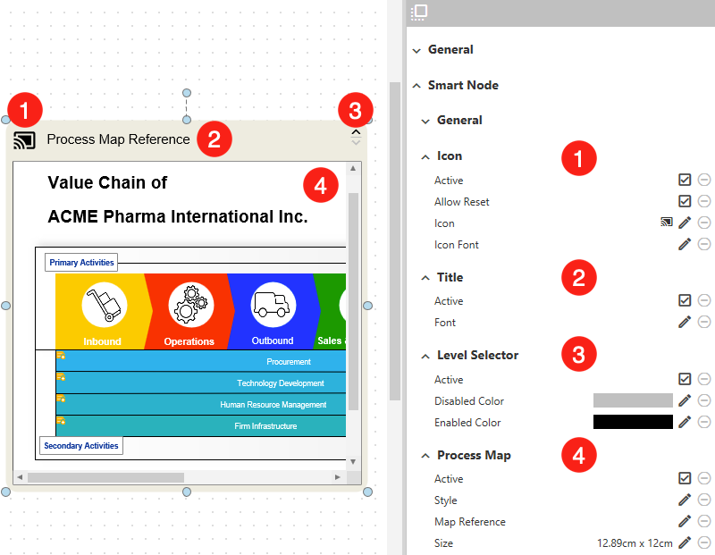 2. Title - This item lets you adjust the title (Process Map Reference) that is displayed in the upper area of the Smart Node.
