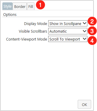 Styleas well asBorderandFill. In the Border tab you have the possibility to define the border of the linked process map by using a color palette. Fill, on the other hand, can be used to change the background color of the linked process map. - Display Mode - Here you have the choice between